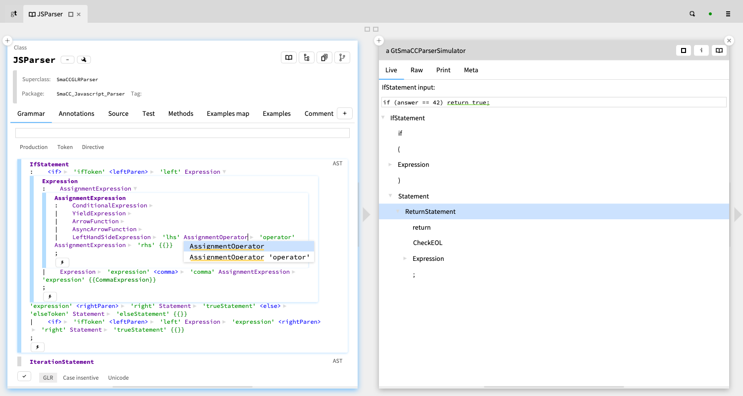 We implemented it primarily in Smalltalk because Smalltalk offers a reflective system in which the environment can be changed live while using it. This decreased the cost of research which was essential for us to discover what today we call Moldable Development.