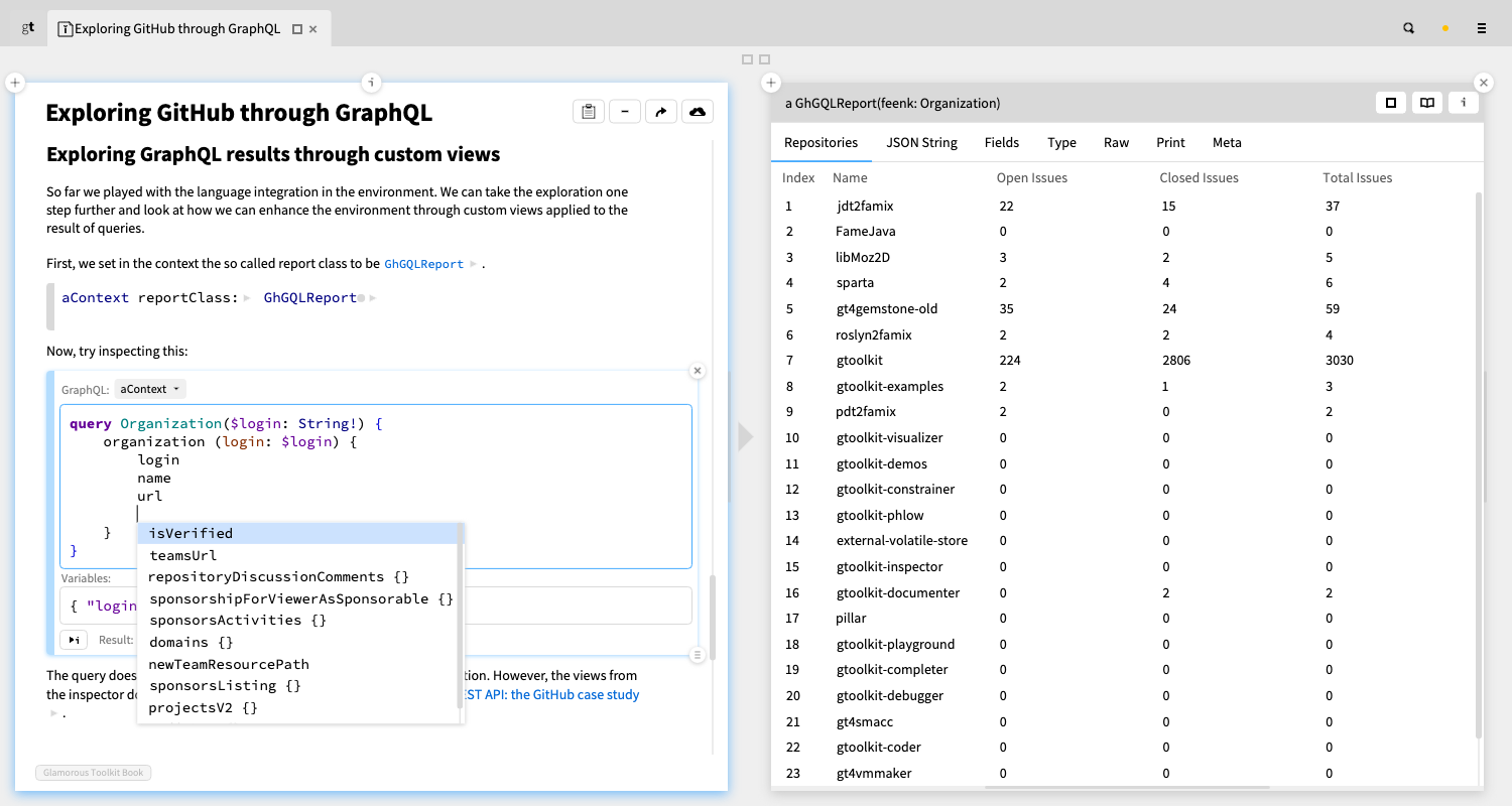 Exploring the book about Glamorous Toolkit written in Glamorous Toolkit.